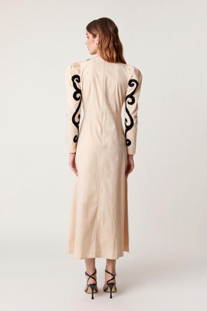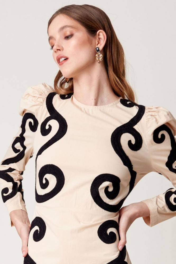 فستان شتوي بيج مرسوم بنقش أسود مميز