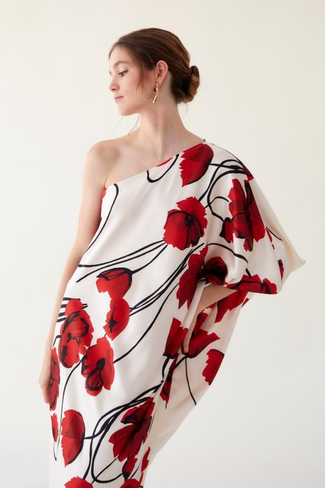تألقي بإطلالة أنيقة ومميزة مع فستاننا الطويل ذو التصميم الفاخر بطباعة الأزهار الحمراء. يتميز هذا الفستان بتصميم كتف واحد يجمع بين الجرأة والرقي، مما يضفي لمسة من العصرية على مظهرك. مصنوع من قماش ناعم وانسيابي ليمنحك إحساسًا بالراحة طوال اليوم، سواء كنت تستعدين لمناسبة خاصة أو ترغب في الظهور بإطلالة مميزة في أمسية هادئة. الطباعة الزهرية الجريئة باللون الأحمر على خلفية بيضاء تعزز من جاذبية الفستان وتجعله قطعة فريدة من نوعها. هذا الفستان مثالي لمن تبحث عن فساتين طويلة ناعمة وفاخرة تضيف لمسة من الأناقة والرقي إلى خزانة ملابسها.